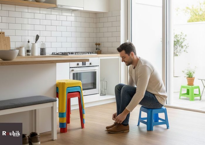 ۷. سبک، قابل حمل و بیدردسر: بزرگترین مزیت چهارپایههای پلاستیکی، وزن کم آنهاست. برخلاف مدلهای چوبی یا فلزی، میتوانید آن را به راحتی با یک دست بلند کرده و از آشپزخانه به اتاق خواب یا حیاط ببرید. طراحی هوشمندانهی آنها نیز باعث میشود فضای بسیار کمی اشغال کنند و به سادگی در گوشهای از انباری، کمد یا زیر سینک جا شوند.
