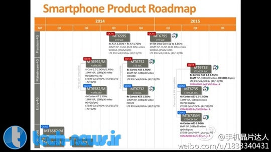 در ماه آگوست، مدیاتک پردازنده پرچمدار خود، یعنی MT6795 را معرفی کرد. این مدل دارای هشت هسته ی 2.2 گیگاهرتز Cortex-A53 و پردازنده گرافیکی PowerVR G6200 می باشد. آخرین سری پردازنده ها همچنین شامل MT6735 (پردازنده هشت هسته ای 1.7 گیگاهرتز Cortex-A53 به همراه گرافیک Mali-T760MP2) و MT6732 (چهارهسته ای 1.5 گیگاهرتز Cortex-A53 بهمراه گرافیک Mali-T760Mp2) و MT6735M (چهارهسته ای […]