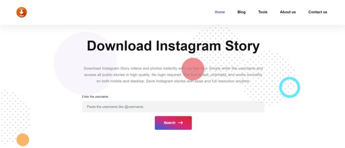 - مرحله دوم (واردکردن نام کاربردی در دانلودر استوری): در صفحه اصلی سایت ذکرشده، به قسمت Tools یا ابزارها بروید و از آنجا، instagram story downloader یا Instagram Highlight Downloader را انتخاب کنید. در این مرحله، نام کاربری کپی شده از اینستاگرام را در فیلد مخصوص وارد کرده و مرحله بعدی را دنبال کنید.